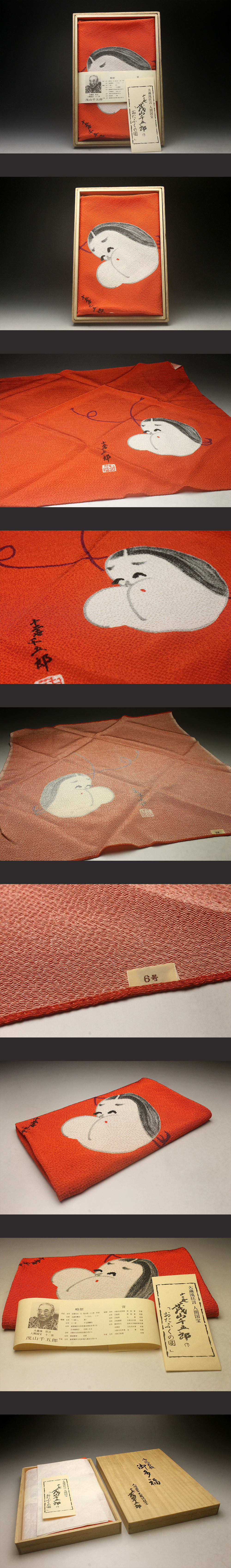 【余韻】 十二世千五郎小風呂敷 6号 人間国宝 大蔵流狂言 十二代 茂山千五郎 御多福 絹100% 木箱入り 当時物 現状品 ぷらみ <同梱可> 收藏