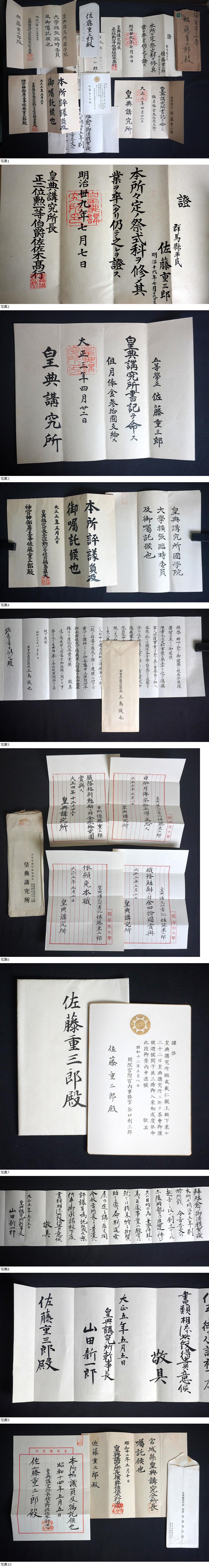 *戦前「神宮神部署 宮司 佐藤重三郎 皇典講究所 証書 手紙 関係資料」まとめて/國學院大学 山田新一郎 佐佐木高行 鍋島直大* 收藏