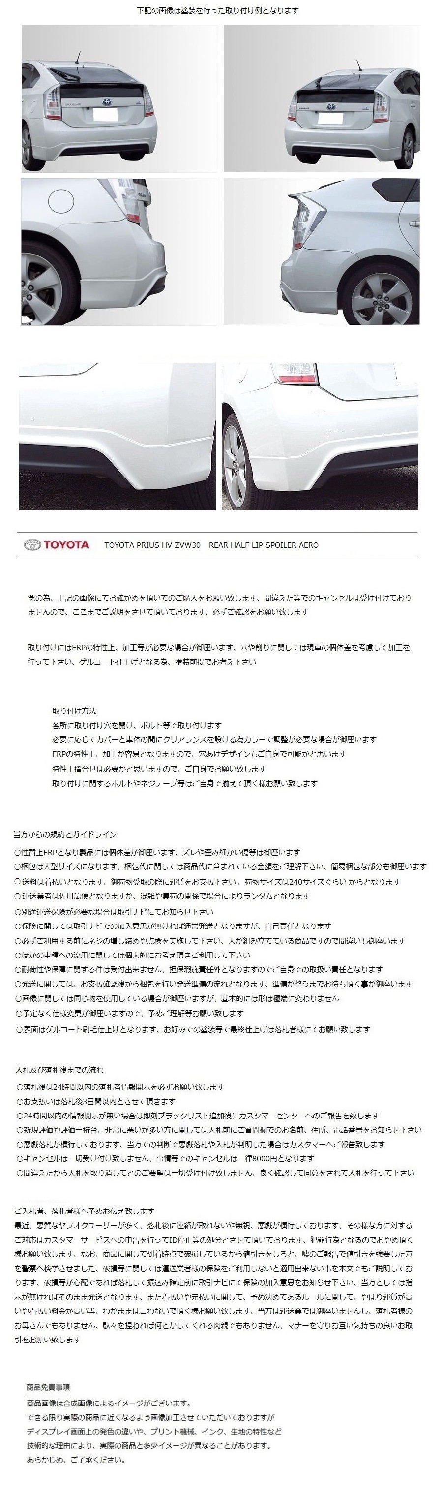 ZVW30 プリウス 30系 前/後期 リアハーフスポイラー エアロ アンダースポイラー prius toyota トヨタ(検索用 モデリスタmodellistaルック 收藏
