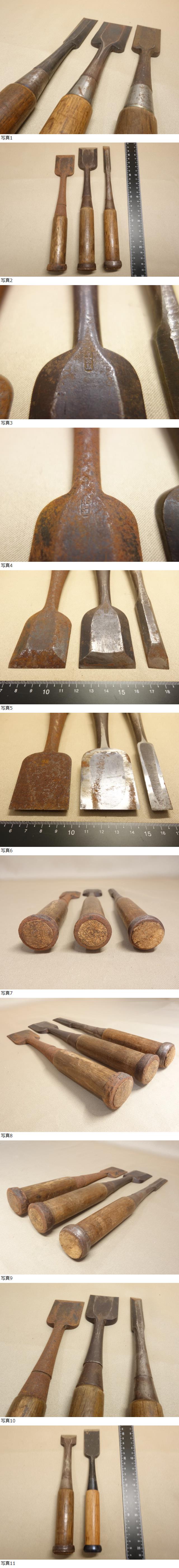 T73 叩き鑿(3) 8本まとめて 正市 大吉 菊弘丸 ?弘 東知正 高弘 鳥居刻 / 大工道具 のみ 收藏