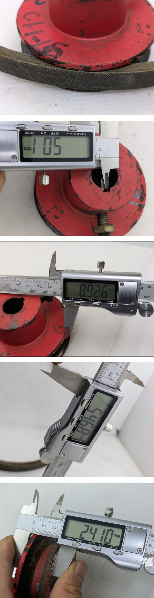 | ●●最後まで読んで下さい●●納得した上でご入札してください●● ●機械専門アカウントは**こ ち ら**です。 ●当方の別出品物を同時購入しても送料分安くなりません。 ●発送料金は入札ボタン付近にあり、沖縄、北海道、離島以外一律です。 ●塩尻市から発送します。 ●離島発送はできない場所がございますので、事前にお問い合わせください。 ●発送日は月、水、金、日です。急ぎの場合はご連絡をお願いします。 ------------------------------------------------------------------------------------------- ●ワラカッタークボタCH-15から外した1連のプーリーです。 ●Bベルトです。 ●軸 径:約Φ18mm ●鍵 幅:約5mm ●プーリー外径:約Φ90mm ●全体 厚さ:約54mm ●ベルト部 厚さ:約24mm ●書いたインクは消さずに発送します。 ●素人寸法のため、測定誤差があります。 ●中古品のため、サビや汚れがあります。 ●錆は各自で取り除いてください。 ●現状写真の通りのまま送ります。 ------------------------------------------------------------------------------------------- ●下の方にも画像がございます。※たまに写真の枚数が不足していて画像がない場合があります。 ●落札後、ご指定配達の時間帯がある場合はあらかじめご連絡してください。 | |||