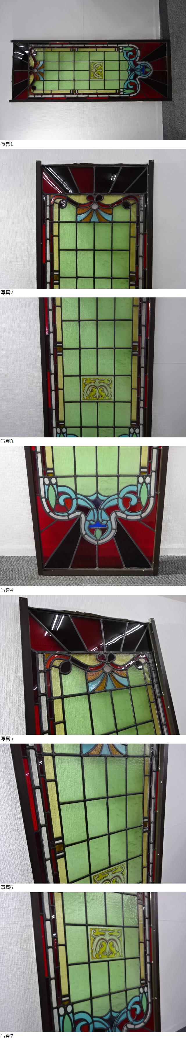 26-0174① ・ 在庫多数◎ ステンドグラス アンティーク 600×1600mm 窓枠 枠 パネル 教会 收藏