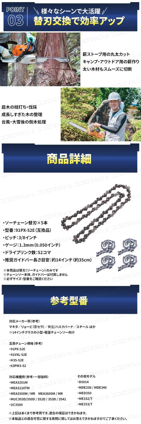 チェーンソー ソーチェーン 替刃 14インチ 35cm 5本 91PX-52E 91VXL-52E H35-52E 63PM3-52 互換 オレゴン ハスクバーナ マキタ リョービ 刃 收藏