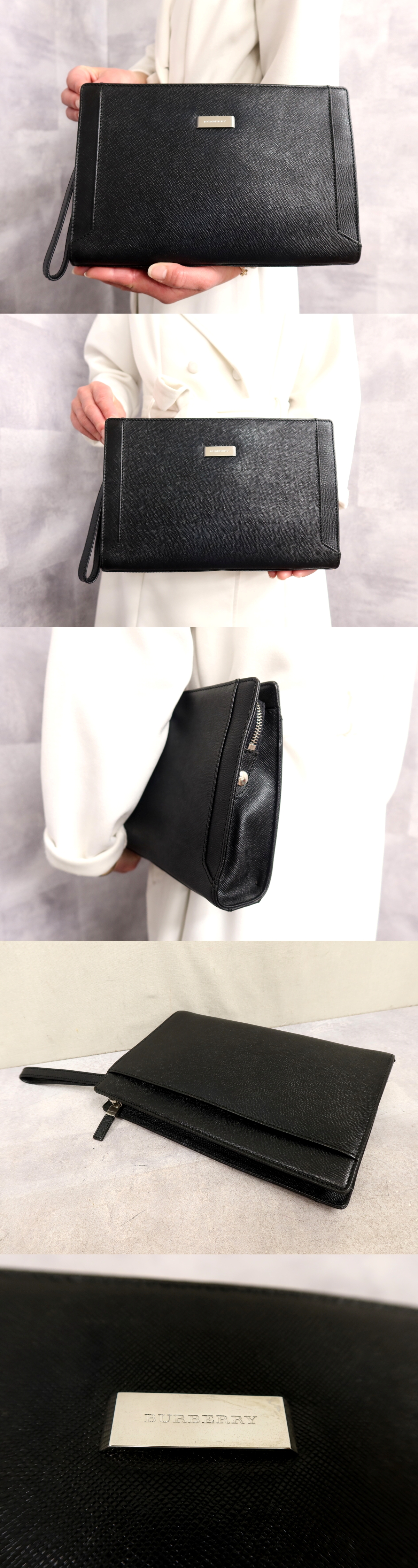 ●超美品●BURBERRY バーバリー●ロゴプレート●カーフ レザー 本革●セカンド クラッチ バッグ●黒●シルバー金具●収納 かばん●Js64176 收藏