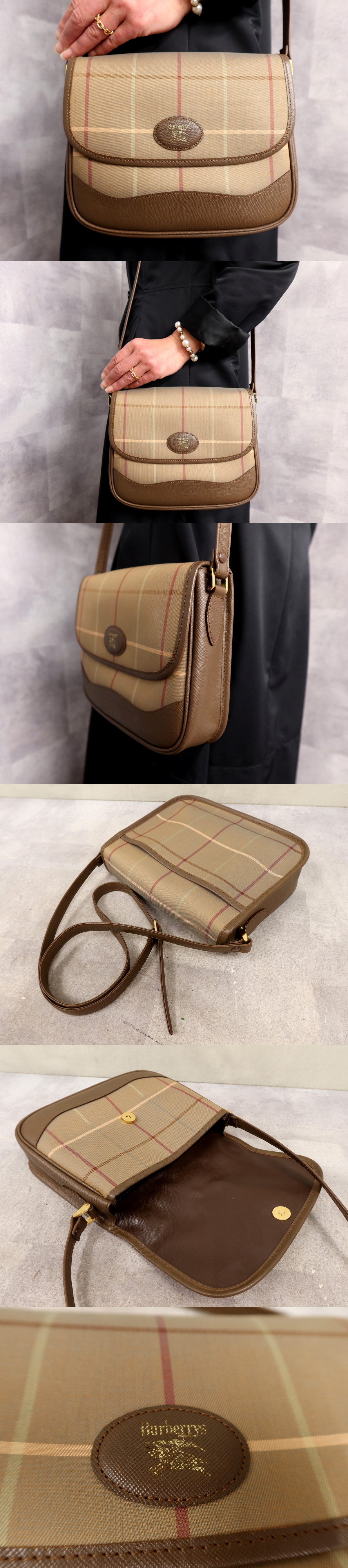 ●超美品●BURBERRY バーバリー●ナイロン カーフ レザー 本革●ショルダー バッグ●ブラウン系●ゴールド金具●ヴィンテージ●Js64220 收藏
