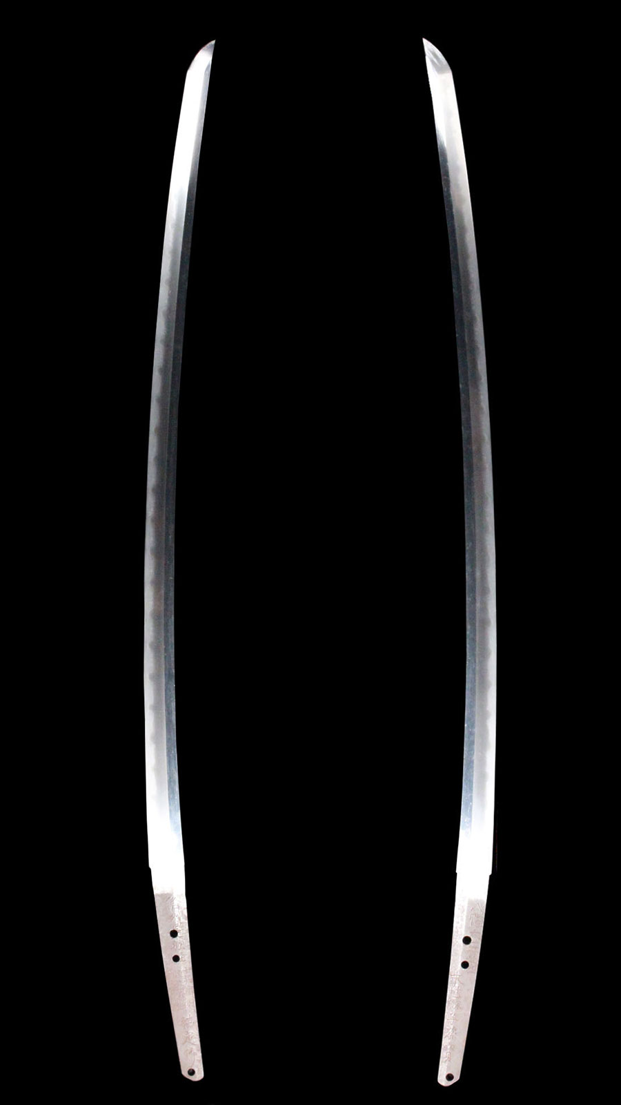 刀身長:約73.6cm 反り:約2cm 目くぎ穴:3個 元幅:約32.3mm 元重:約7mm 先幅:約21.9mm 先重:約4.6mm 刀身重:約791g 棟:庵棟 ハバキ:銅 |