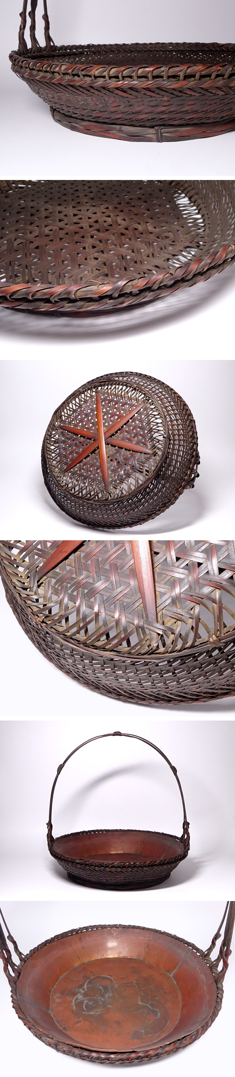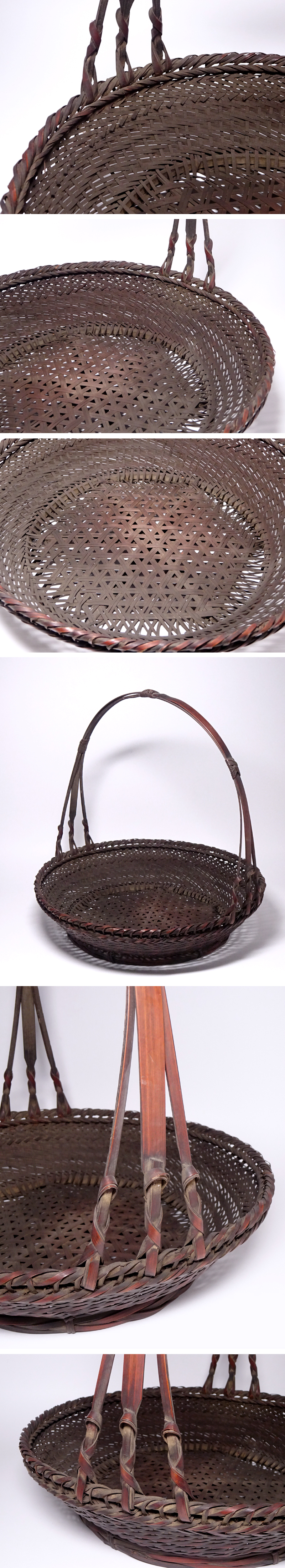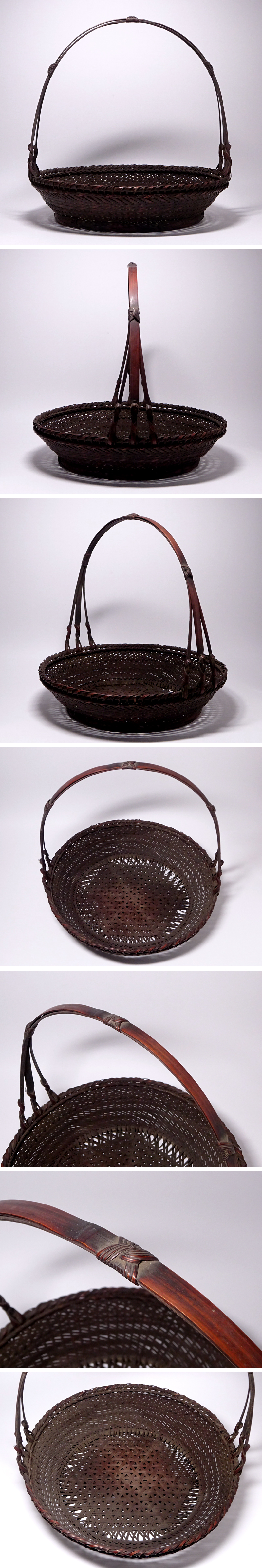 慶應◆秀逸茶道具 煤竹編双耳花籠 高さ19cm 花器 收藏