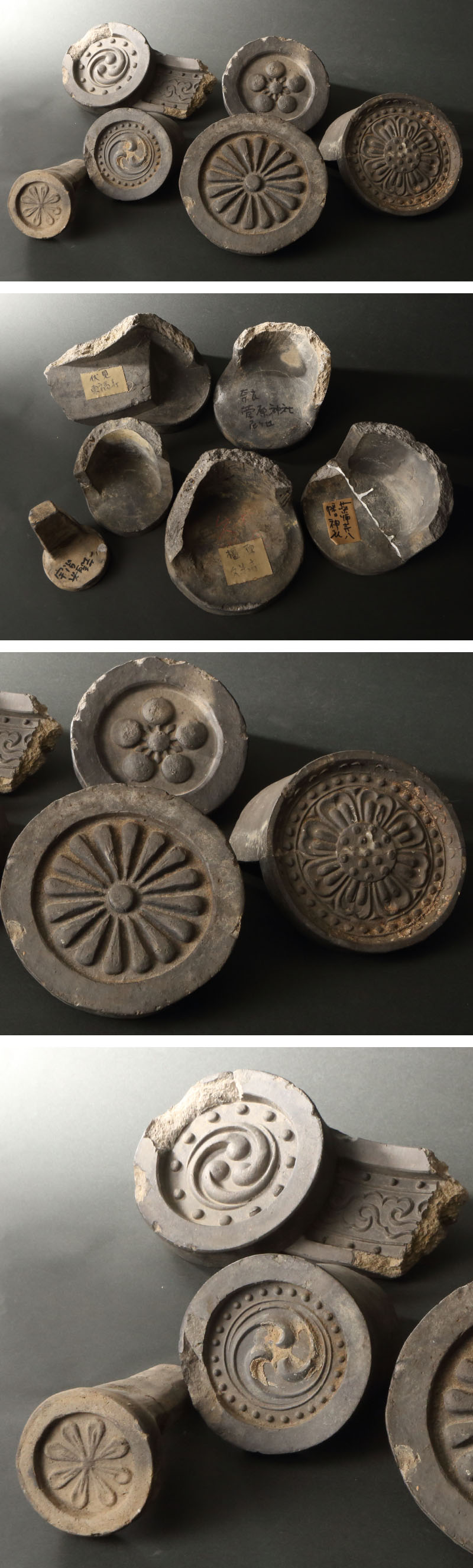 委託HK◇時代 瓦ヤマ(出土品 発掘品 日本 菊紋 梅文 三つ巴 建築 神社 寺院 家 城 城跡 古物 骨董 資料 丸瓦 石造 石工 宇治 伏見 奈良) 收藏
