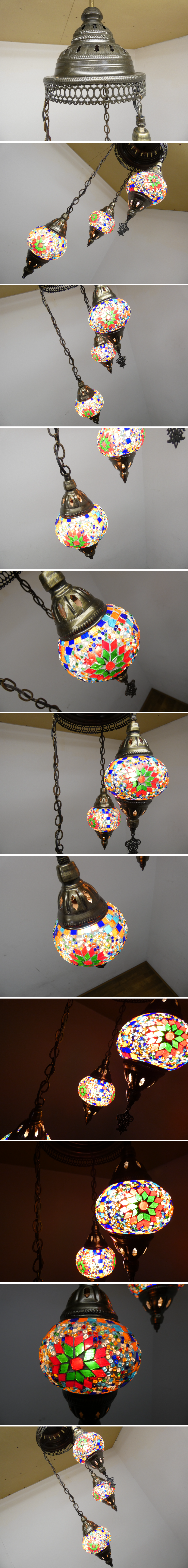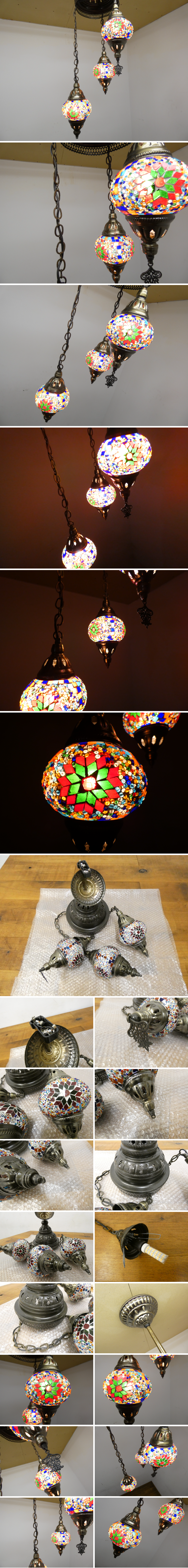 ◆RN218◆美品◆トルコランプ◆ハンドメイド◆モザイクガラス◆ペンダントライト◆照明◆直径13cm◆3灯◆幾何学模様◆吊り下げ照明 收藏
