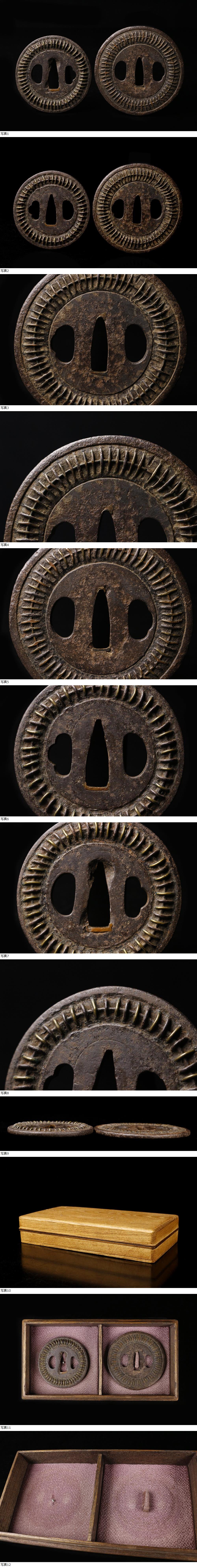 【LIG】江戸期 鉄地 信玄鍔 大小二点揃 箱 刀装具 時代武具 コレクター収蔵品 ② 2601165- 收藏