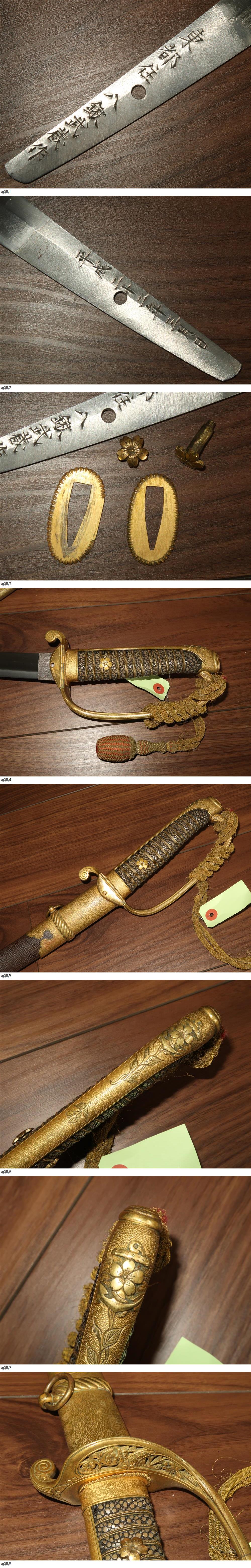 旧日本海軍サ-ベル軍刀拵入.東都住八鍬武蔵作.平成二十二年三月日.特注品.記念刀.太刀.鮫研出.マーク.明治.個人装備武具甲冑 收藏