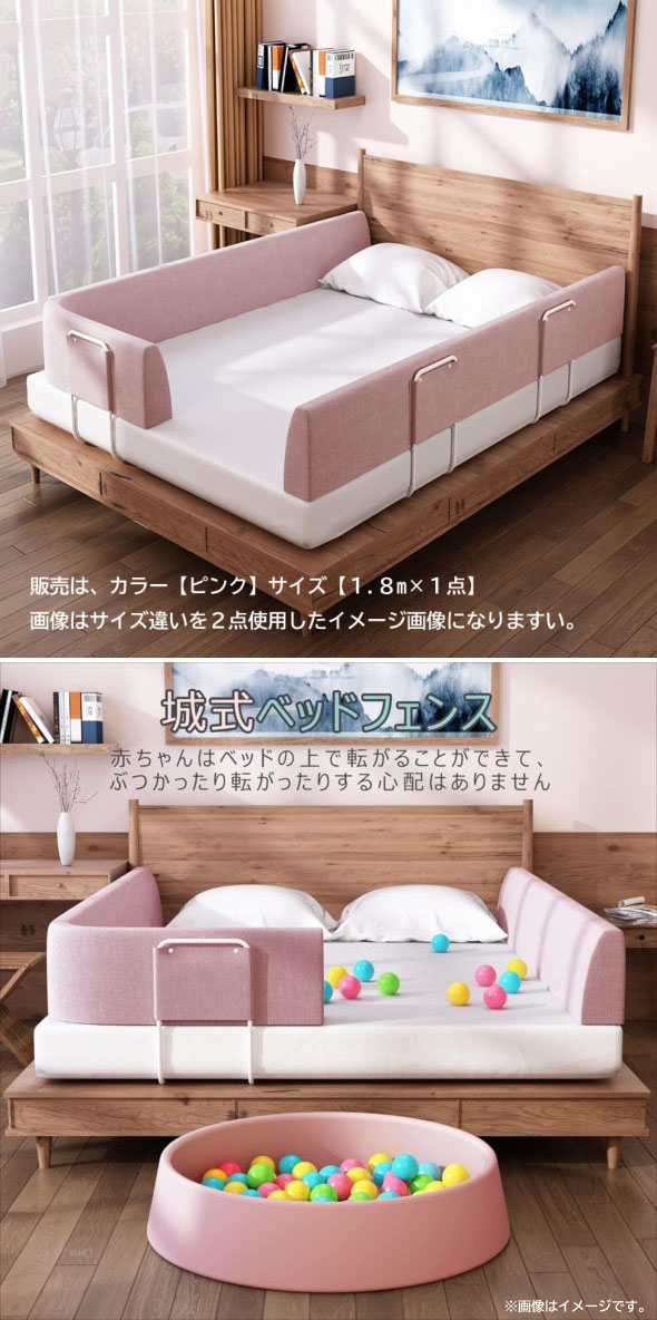 E0944YO ◆0210_2凹【アウトレット品】ベッドフェンス クッション Edenplaykey ベッドガード ピンク 1.8m 1点入り未使用 收藏