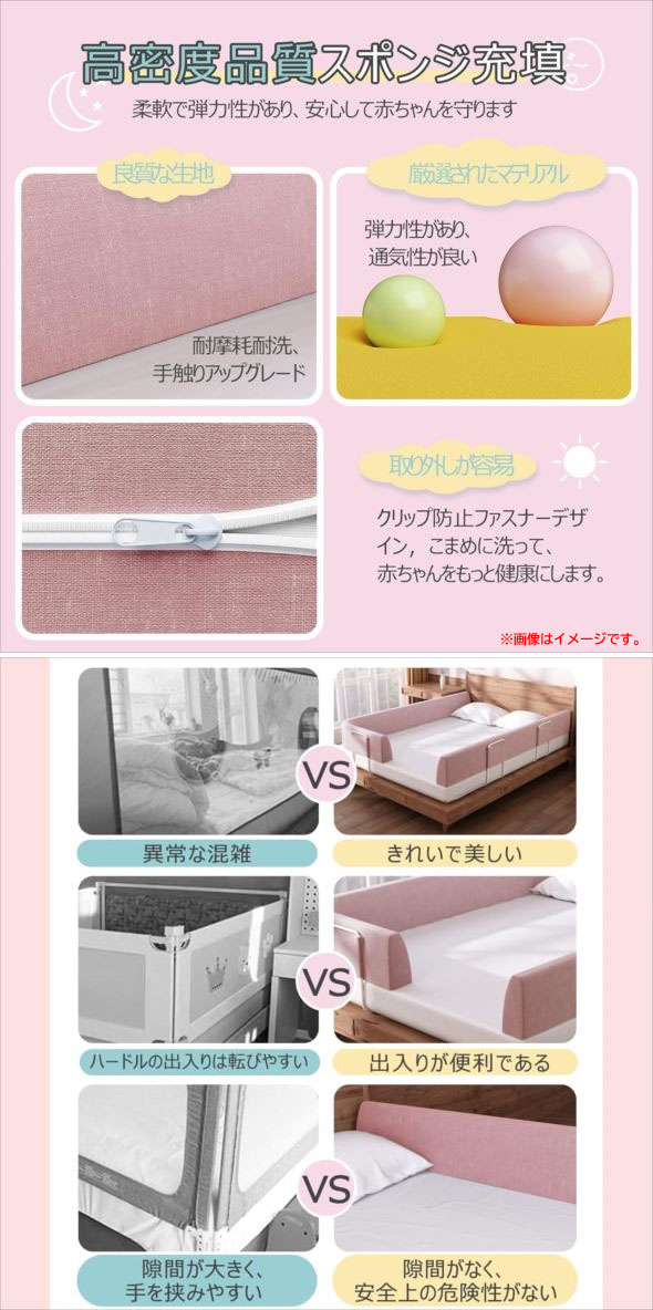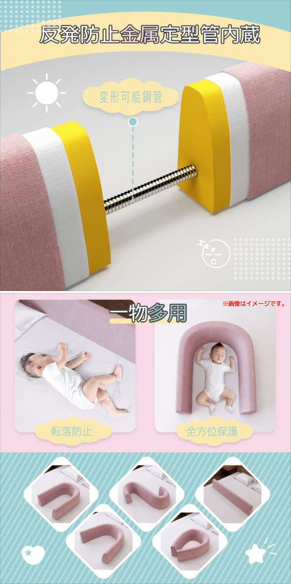 【商品特長】 ◆5段階調節、簡易取り付け マットレスの厚さに応じて高さを自由に調整し、取り付けが完了した後、ブラケットの高さは40 CM-60 CMに達し、 5段の位置で快適な高さに調整することができます。5-25 CMのマットレスに適していて、 お母さんは一人で5分で簡単に取り付けることができて、お母さんのために貴重な時間を節約します。 ◆自由変形、60度のデザイン 60度の傾斜で設計されており、赤ちゃんが座ることを学ぶのに役立ちます。 また、高品質の柔らかさは母親の背もたれクッションにもなります。 ベッド柵には固定チューブが内蔵されており、 U字型、S字型、O字型、L字型など、お好きな形に自由に変形できます。 ◆高密度スポンジ材料 高密度スポンジ材料を選んだのは、赤ちゃんの衝突をよりよく保護するためで、この材料は弾力性があるだけでなく、 外力による陥没を招くことはありません。フェンスカバーは取り外して洗うこともできます。 | |||||||||||