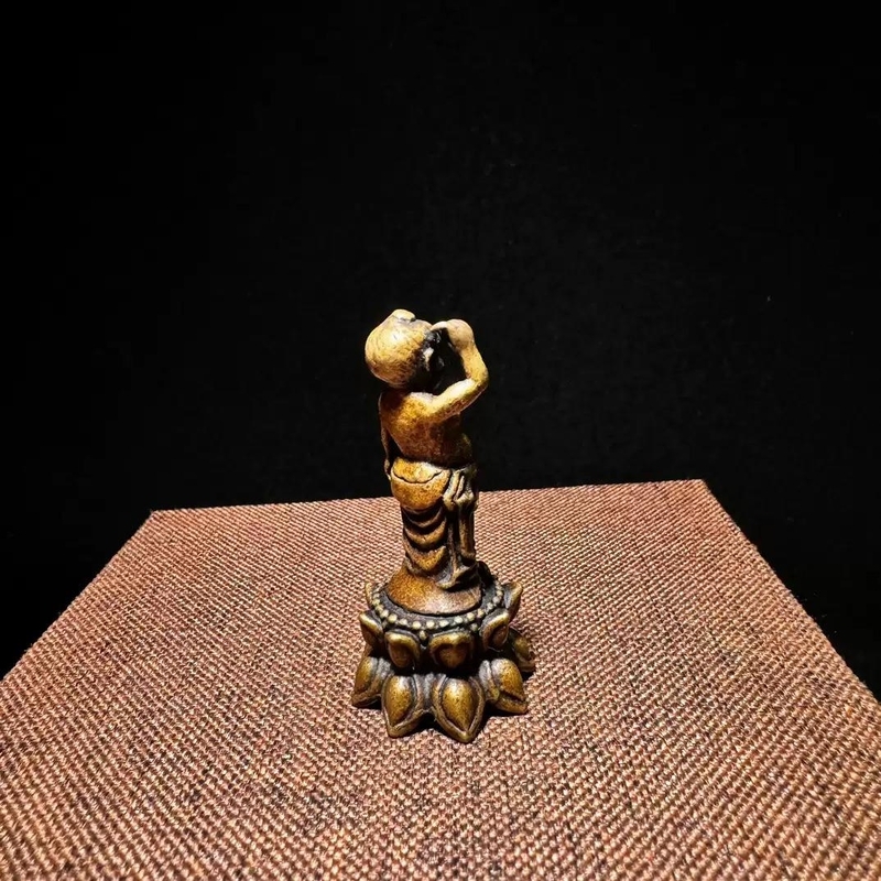 [釈迦力] AVALO250626-18.1「蓮華地蔵菩薩 置物、純銅製、ミニチュア ポケット仏、銅製仏像、小型銅製アンティーク仏」 收藏
