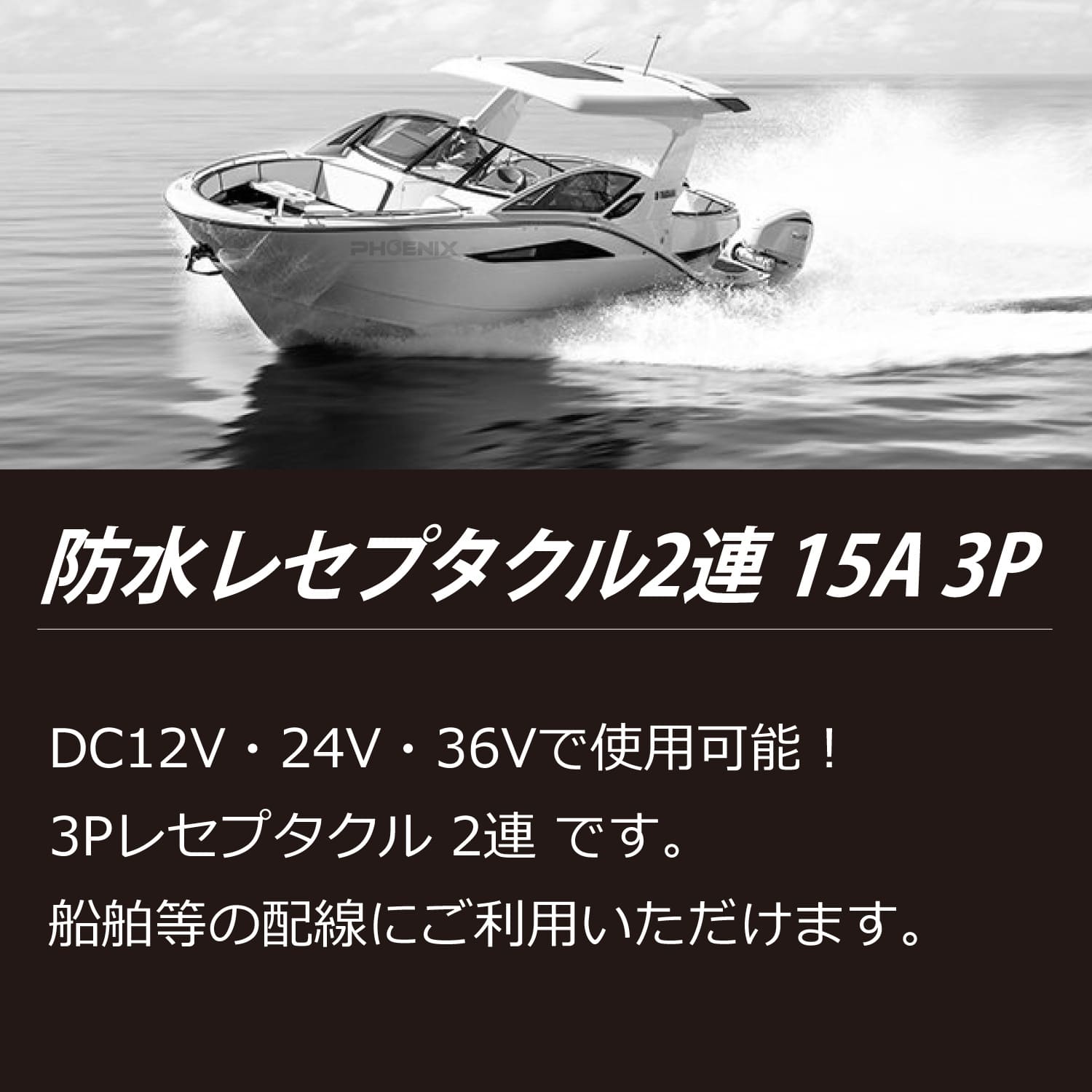 防水レセプタクル 2連 15A 3P 蓋付き DC12V 24V 36V IP56 船舶 マリン用品 收藏