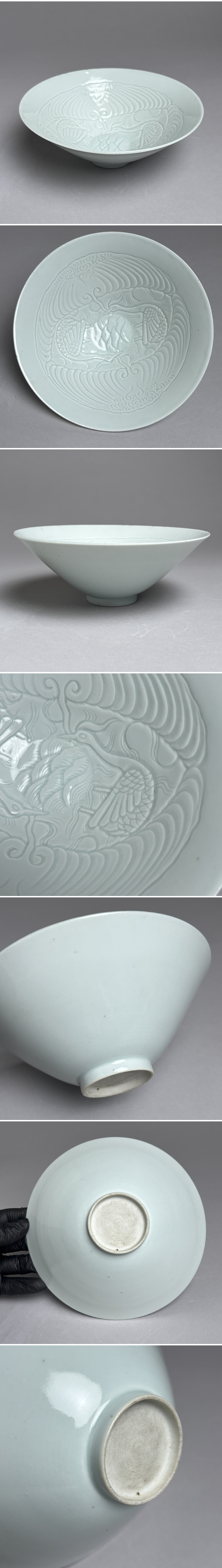 影青 刻花碗 皿 茶道具 鉢 青白磁 仙鶴唐草文 景徳鎮 宋時代 中国美術 陶磁器 磁器 時代物 唐物 古玩 骨董品 收藏
