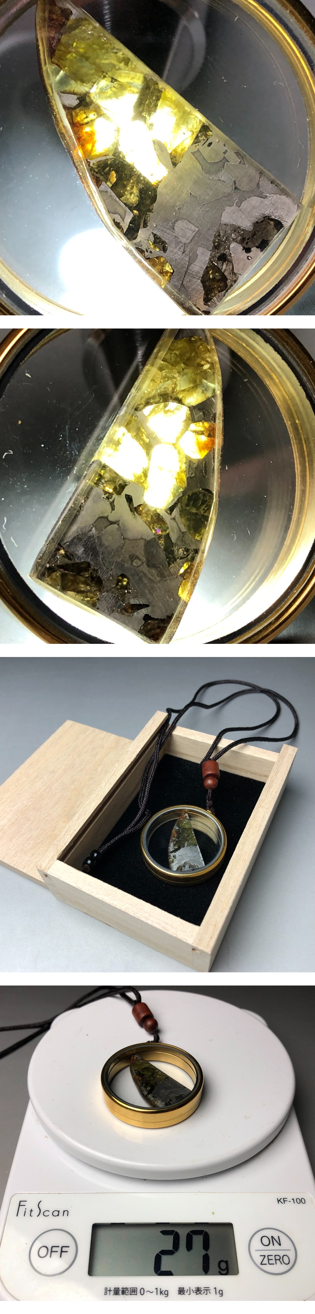 パラサイト隕石(Seymchan) 石鉄隕石 ペンダント ロシア産 コーティング済み 宇宙パワー 重さ27g ケース付き 收藏