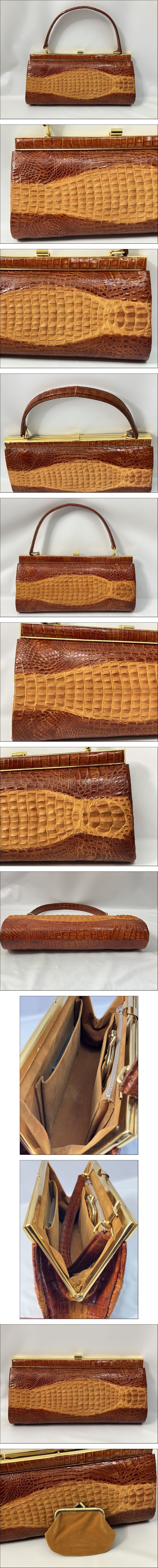 クロコダイル エキゾチックレザー ハンドバッグ 和装バッグ ワニ革 幅約28cm 高さ約14cm マチ幅約5.5cm 現状品 收藏
