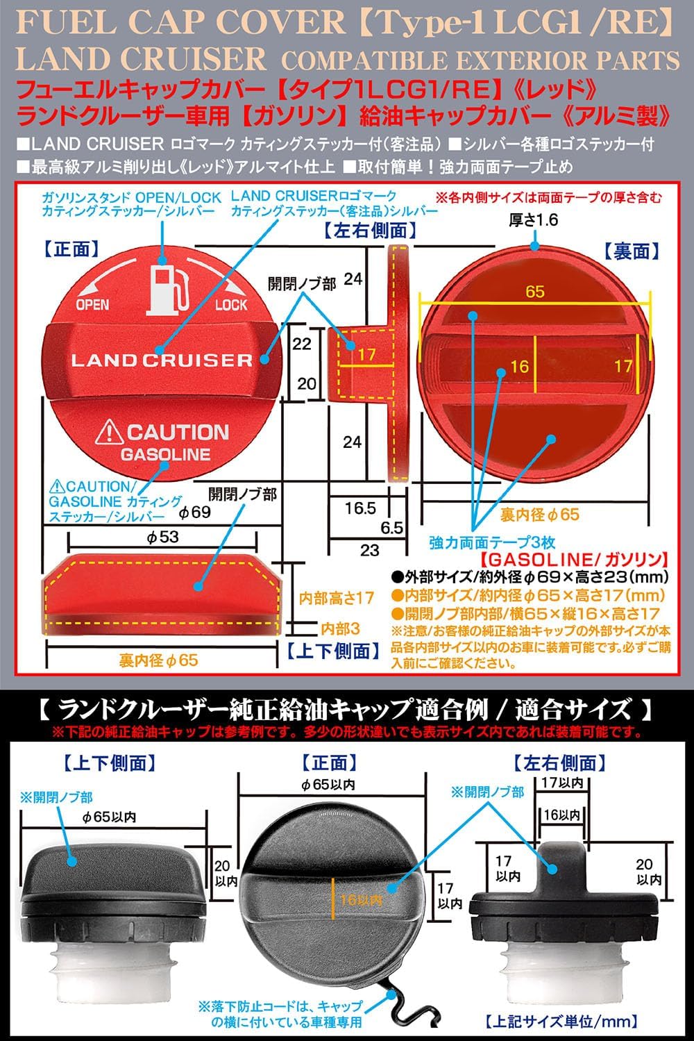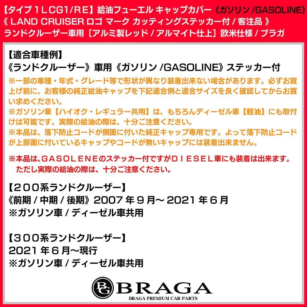 [タイプ1LCG1/RE]LAND CRUISERステッカー付/ランドクルーザー/ガソリン/給油 フューエルキャップ カバー/レッドアルミ製/ブラガ BG BRAGA 收藏