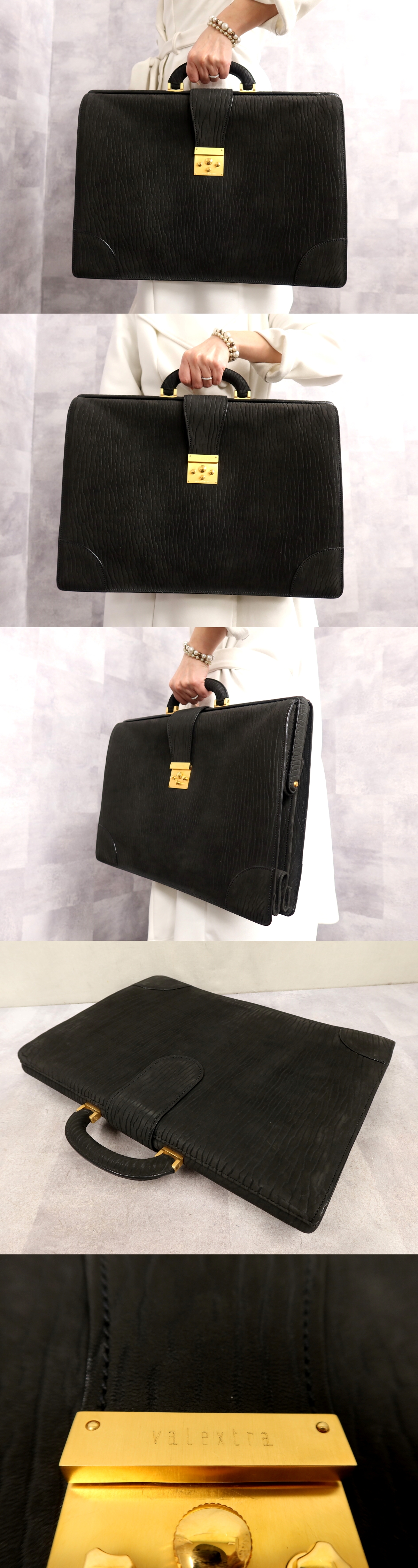 ●超美品●Valextra ヴァレクストラ●メンズ●スエード レザー 本革●ハンド ビジネス バッグ●黒●ゴールド金具●A4 書類 かばん●Js65452 收藏