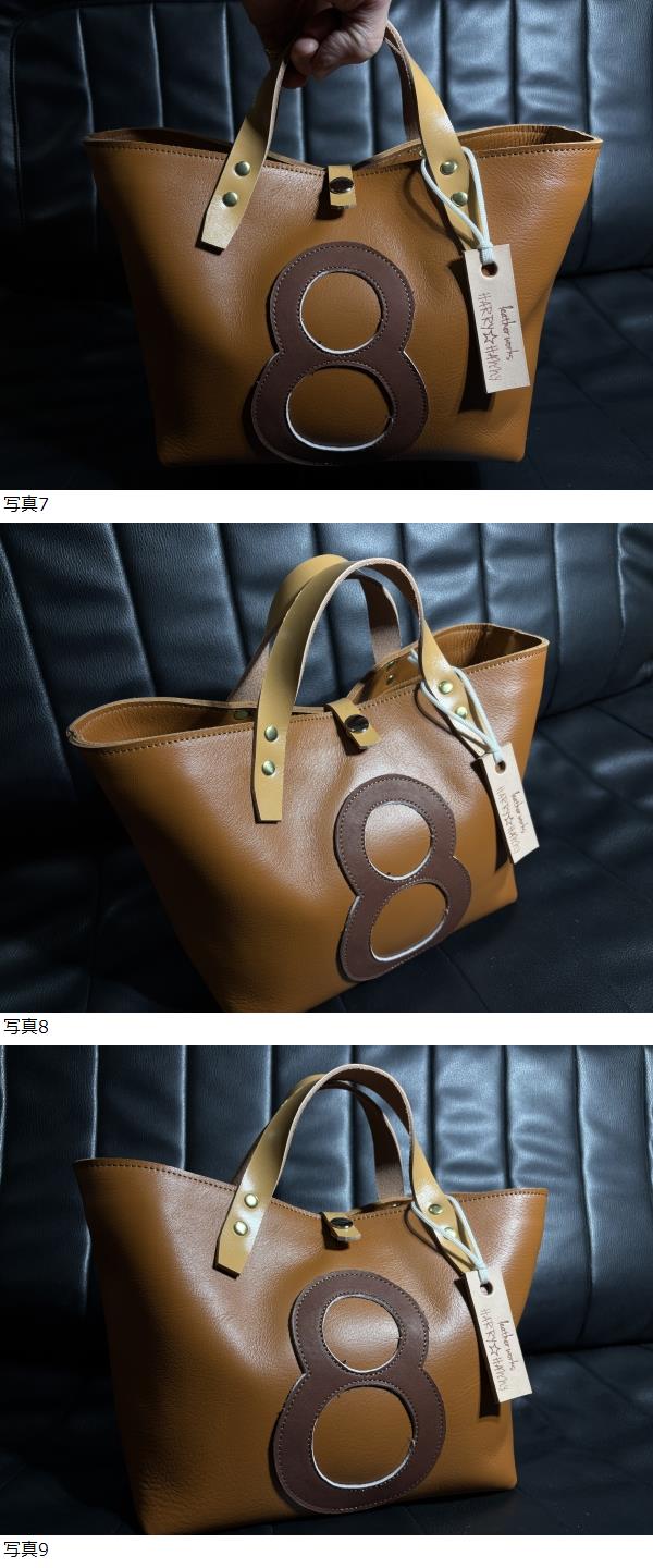 | 商品説明 | Leather Works HARRY☆HANNY オーダーメイド中心の革工房です。 裁断、縫製、仕上げまでALL HAND MADE。 1~10まで1人の職人が仕上げる方式を取ることにより、より卓越した商品製作が出来ると考えます。 他に2つとないONLY ONE ITEMを是非ご堪能ください。 【Description Of Item】 【MATERIALS】牛革 ナチュラルシボ クロム革 【SIZE】横幅約35cm(下部約23.5cm)・高さ約21cm・マチ幅約14cm 【COLOR】キャメル 【SPEC】裏地:岡山産 井原高密度ツイル 持ち手:北米産ステアヌメ革 ポケット:内装にあり 上品さ、高級感、存在感を兼ね備えたヴィンテージ感たっぷりのナチュラルシボ クロム革レザートートバッグ。 フッカフカで厚革、非常に手触りの良く、軽い1本。 特筆すべきは’シボ’。 ナチュラルなシボは誰が見ても高級感があります。 更に絶妙なテリ感が美しいシボ感を演出します。 しかもOILを多めに喰っているので、しっとりと柔らかく、非常になめらかです。 前面にはナンバリング8。 末広がりで、横にすると∞(無限)となることから最高数字とされる8が鎮座いたします。 この8グローブレザーを使用。 そんなBAGをミニトートに致しました。 非常にリクエストの多いサイズで展開致します。 定番の、スタイルを選ばないマルチなトートバッグです。 内装の大型ポケットは確実に重宝します。 口前は簡単にホックで留まる仕様。 持ち手はバランスを崩すことのないシルエット。 贅沢に北米産ステアのヌメ革を使用しました。 吟面がタイトで密な質感のあるヌメ革です。 また、エイジングも致しますので、自分色に育てて下さい。 どんどん濡れた手で持っちゃってください。 どんどん手汗も付けちゃってください。 その代わり、時にはOILでケアを! 枯れるのと育つのは違いますからね! 裏地は贅沢に、岡山産の井原 高密度ツイルをセット。 日本一のデニムの産地、岡山の生地です。 高密度ツイルの感触を是非楽しんでください。 すべてが贅沢なBAG、格安のスタート! 是非この機会に! 【注意】最近また、購入意欲のない方の落札が増え、非常に迷惑しております。 評価新規の方もご入札はお控え頂きますよう、宜しくお願い申し上げます。 ※最低落札価格にて即決されたあと、取り消して欲しいと言われる方が多くお見えになりますが、即決された場合には、いかなる理由があろうとも取り消しは致しませんので、自己責任でのご入札をお願いいたします。 ※お受取り後は速やかに受取連絡をお願いいたします。 【革について】 革は天然素材です。 喧嘩傷、虫などに刺された跡、血筋(血管)、トラ(脂肪の跡)などが、「裁断上、どうしても入る可能性が御座いますのでご承知ください。 本革の特性上、洋服の生地の種類によっては色移りする場合がございます。 発送は、少しでも安くお客様の元へお届けしたいため、折って発送する場合がございますのでご了承ください。 |