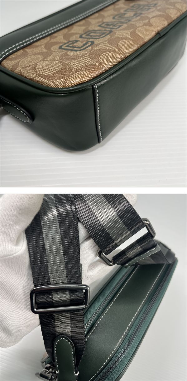2602M0401 美品 COACH コーチ シグネチャー PVC×レザー カメラバッグ ショルダーバッグ クロスボディ モスグリーン 收藏