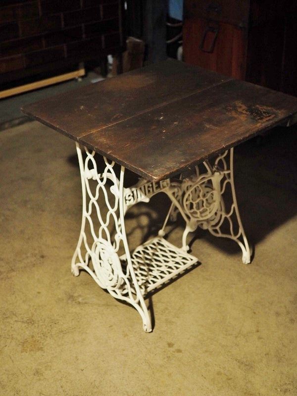 | アンティークSINGER鉄脚に昭和4年の天板をリメイクしたテーブル 古録展 送料別 Lサイズ 中古 品番F4578 | |