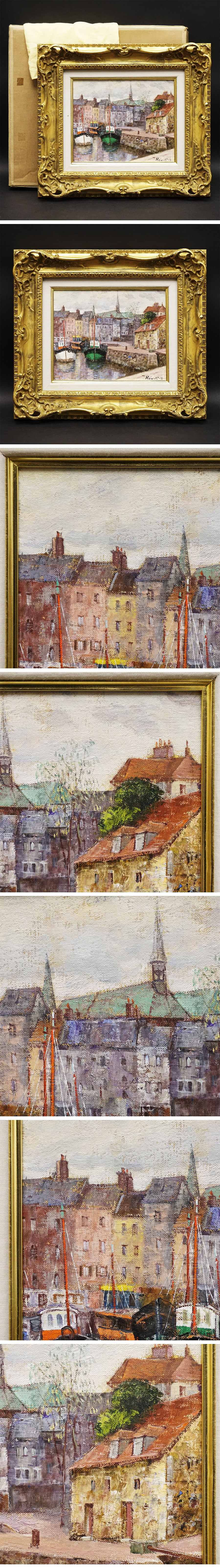 服部保『オンフルール』3号 油彩 油絵 直筆 静物画 裏書サイン 絵画 額装 美術 芸術 アート 古美術品 真作保証品 收藏