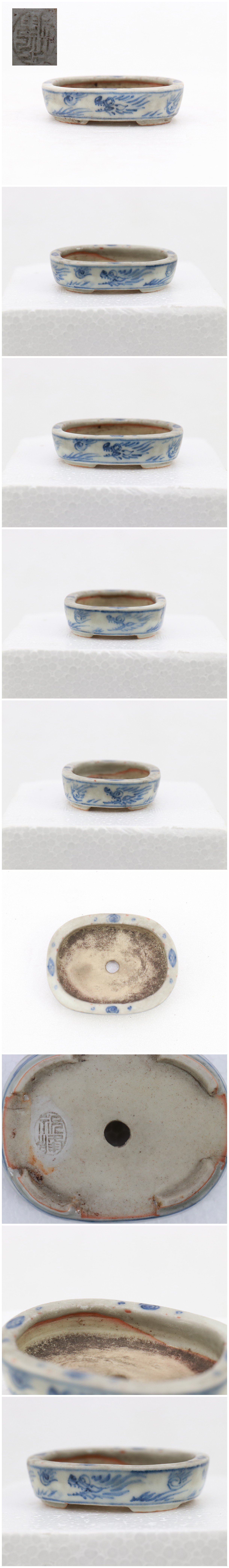 260145 「収集家のコレクター」時代物 楕円鉢 祝峰 作 青花 染付 鉢 小品 盆栽 和鉢 豆鉢 收藏