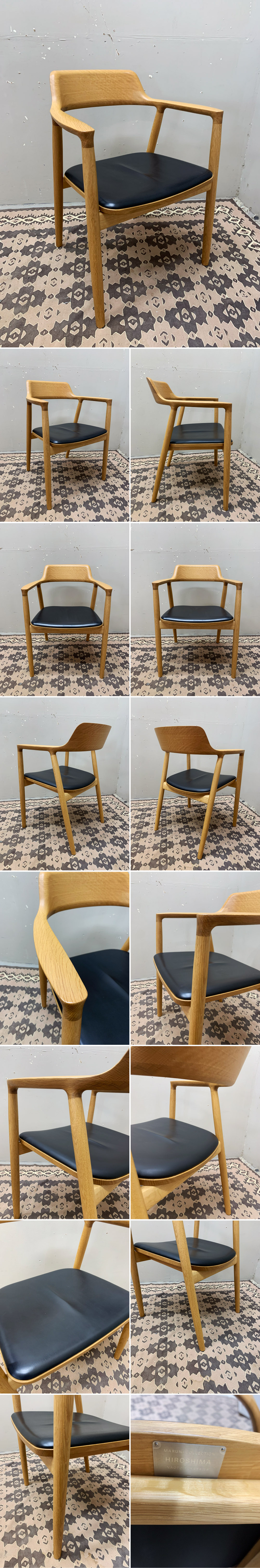 ■EM308C/モデルルーム展示品/マルニ/MARUNI COLLECTION/HIROSHIMA/深澤直人/アームチェア/オーク材/黒本革/21.3万~/名作/高級 收藏