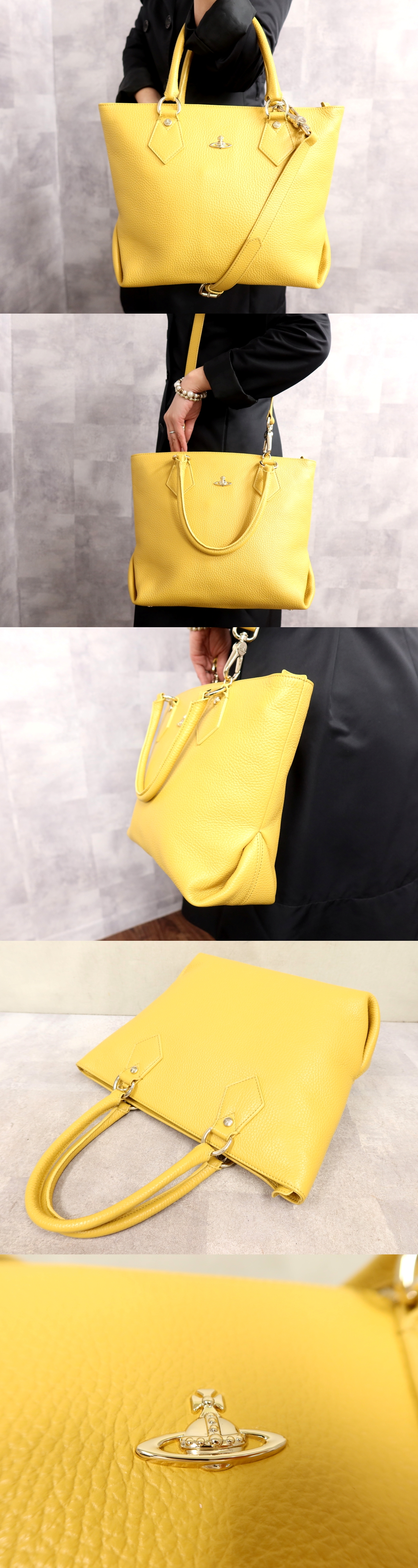 ●超美品●ヴィヴィアン・ウエストウッド●オーブ●カーフ レザー 本革●2way トート バッグ●イエロー●ゴールド金具●B5 かばん●Js66402 收藏