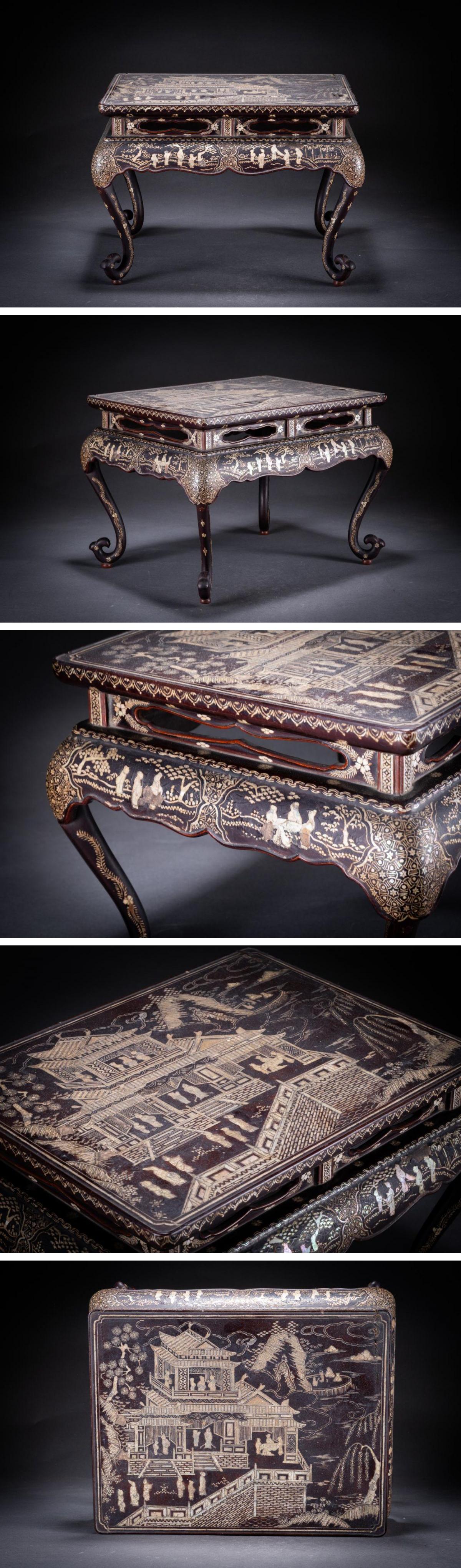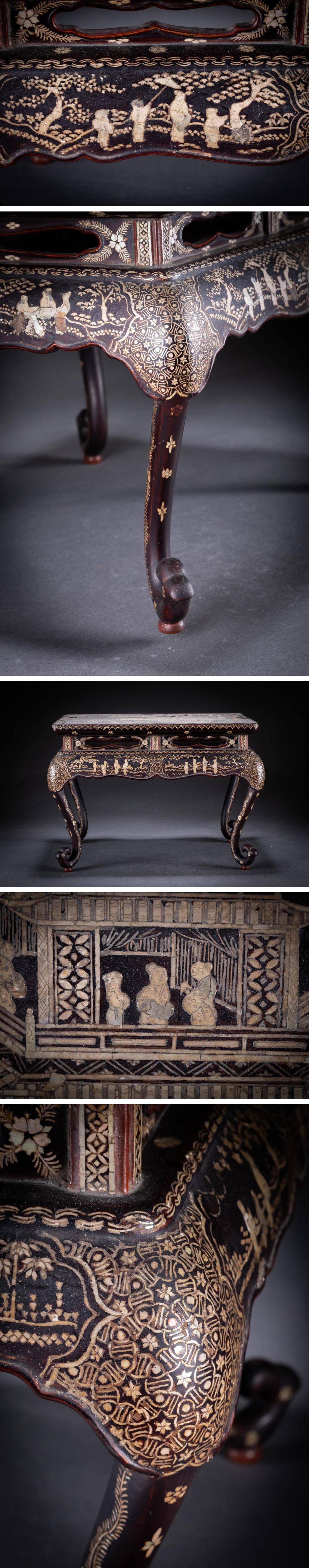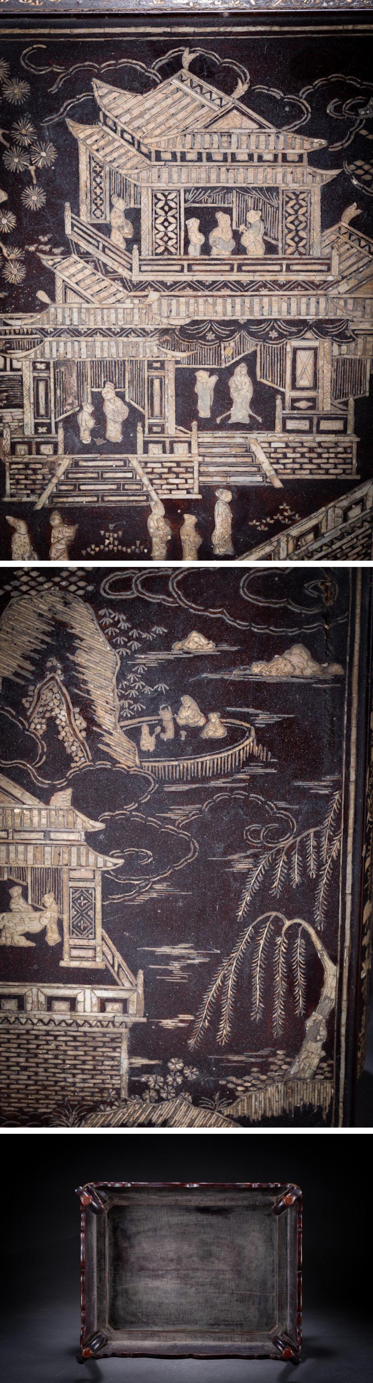 【華】某収集家放出品 李朝時代 朝鮮伝来 唐木象嵌螺鈿 螺鈿細工 人物紋茶台 古美術 骨董品A25090370-EV 收藏