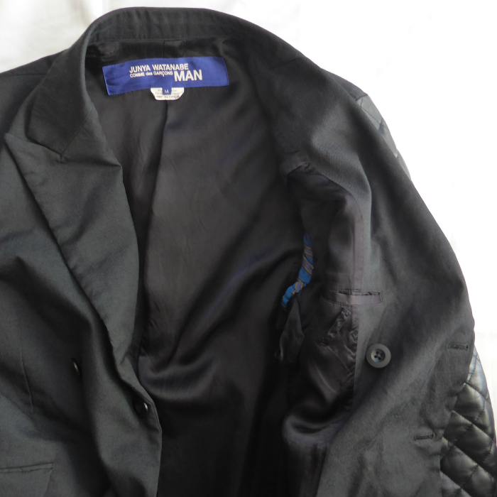 | ジュンヤワタナベマンのドッキングジャケット。 ポリエステルウールのジャケットに牛革の袖をドッキングしたデザイン性の高い逸品。 袖には中綿のキルティング加工を施し、保温性があります。 トラッドスタイルをベースとしたデザインで、モダンな雰囲気のある一着です。 派手すぎないデザインが日々のスタイリングに落とし込みやすく、スペシャルな逸品です。 |