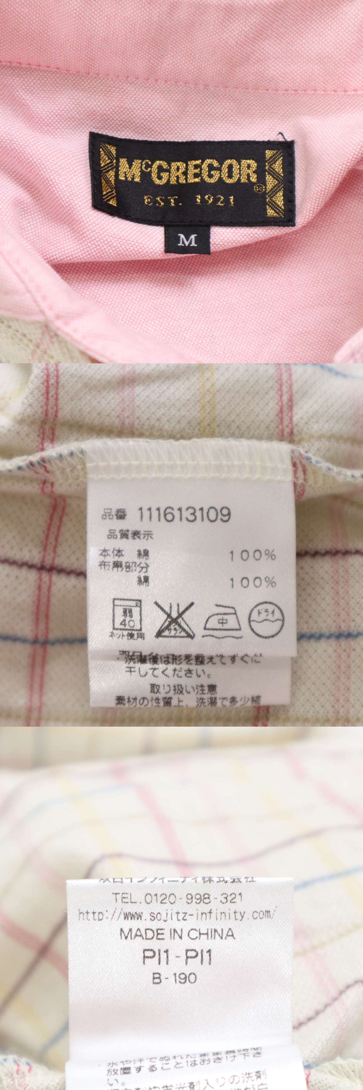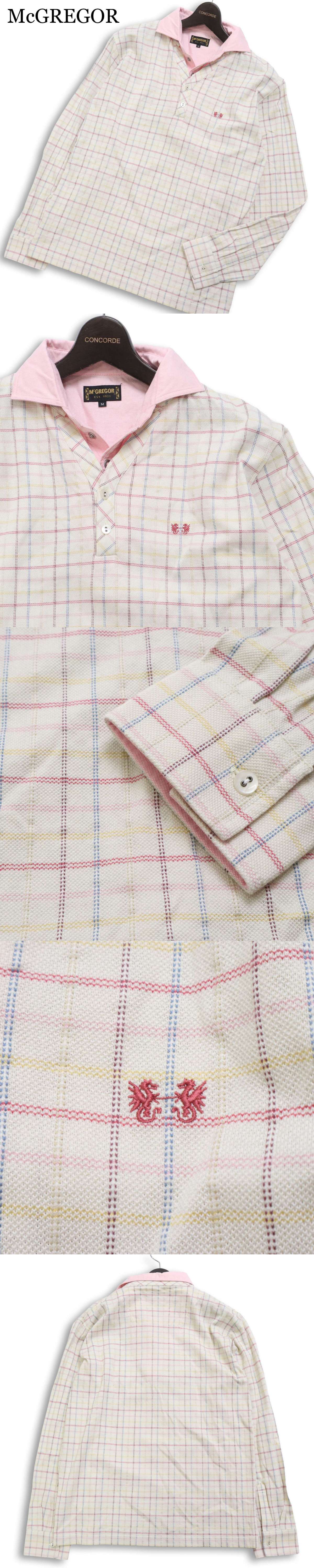 McGREGOR マクレガー 通年 シャツ レイヤード風★ 長袖 鹿の子 チェック柄 ロゴ刺繍 ポロシャツ Sz.M メンズ 收藏