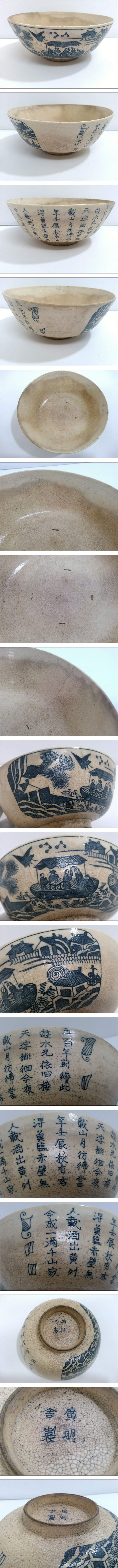 【うぶだし】廣明舎製 平茶碗/直径約16.5cm/高さ約7cm/抹茶碗/茶器/茶道具/抹茶茶碗/人物文/漢詩文/貫入/古道具/古玩/時代物/LHP17 收藏