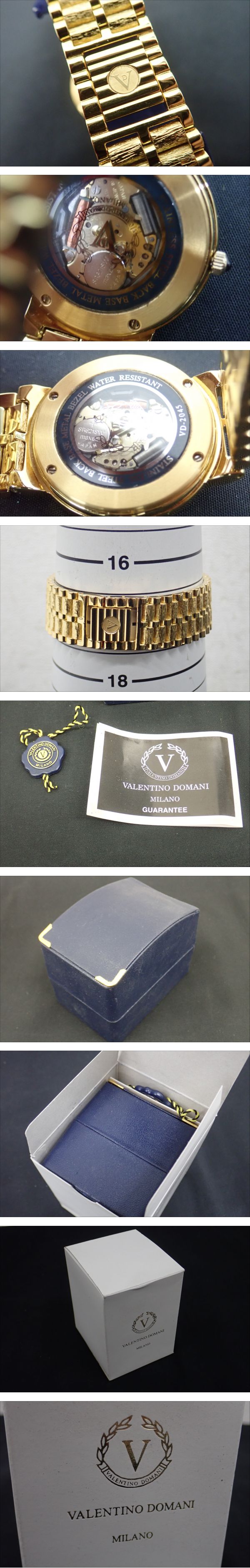 D663-60 美品 VALENTINO DOMANI バレンチノドマーニ VD-2045 QZ メンズ腕時計 3針 デイト ゴールド文字盤 ケース・取扱説明書 收藏