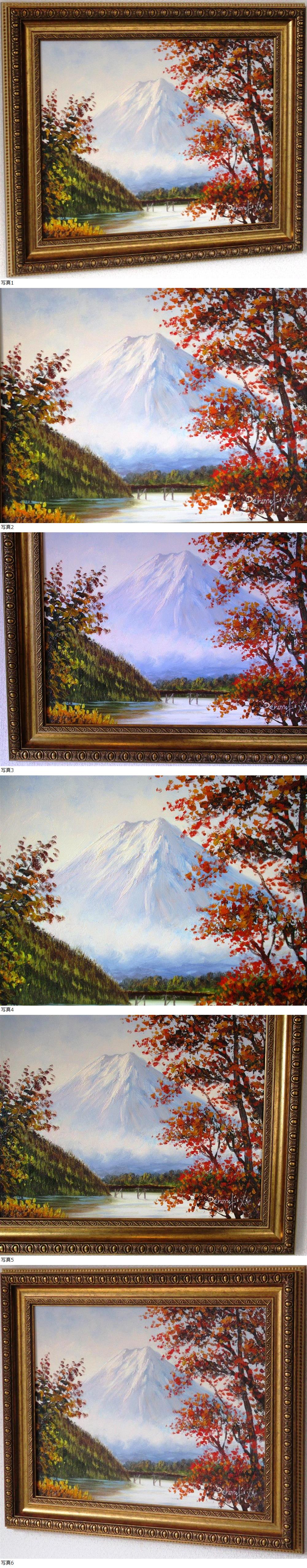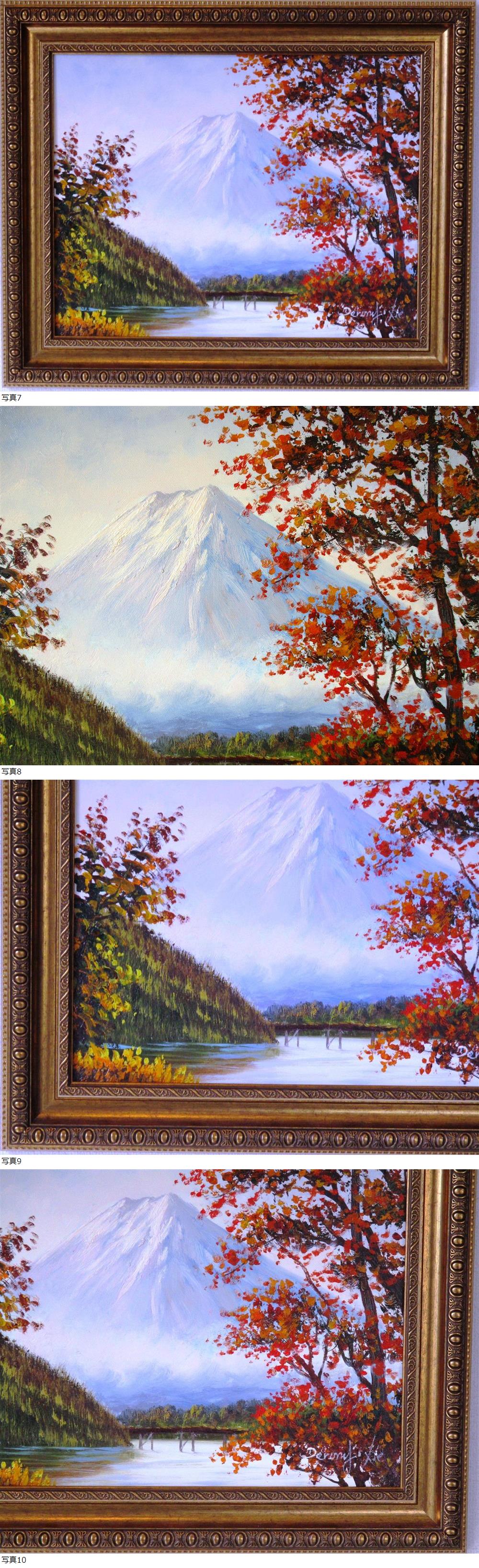 真作 謝徳栄 富士山絵画 油絵 風景画 紅葉河口湖からの富士山 F6 WG289  收藏