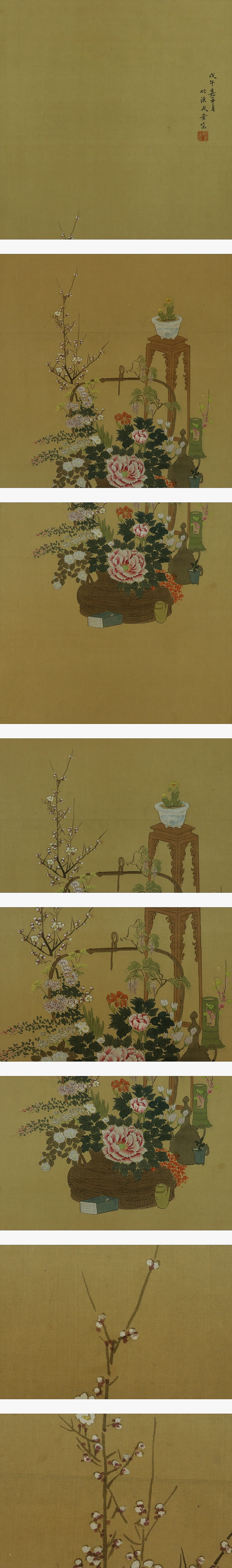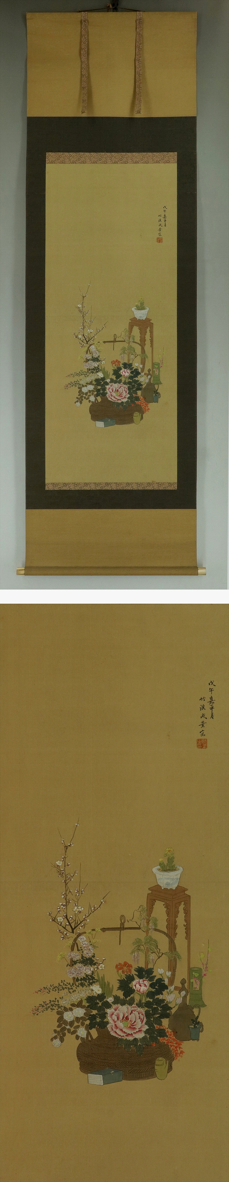 | №2304064【真作】中林竹渓【四季盛花図】◆絹本◆合箱◆掛軸 | |