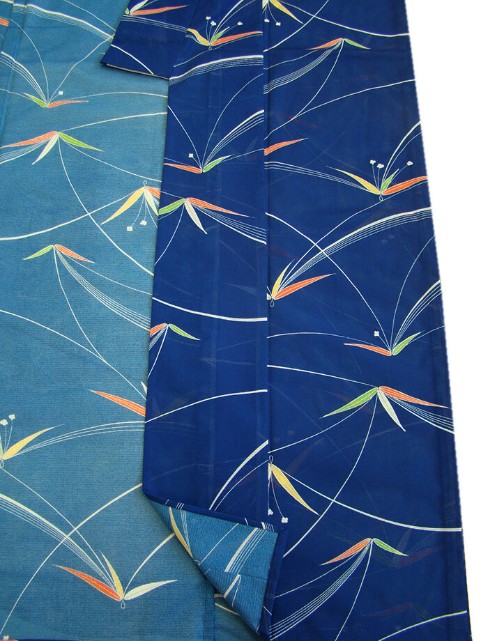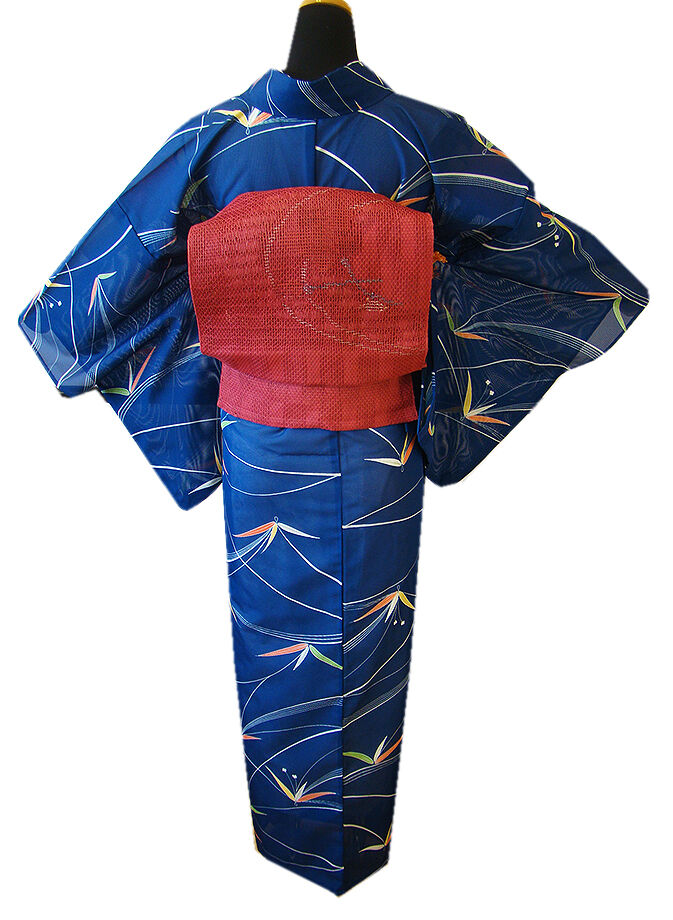 | 商品説明 | こちらのお品は夏物でございますので、7月~8月にお召頂ければと思います。 「絽」と言えば、紗と双璧を成す夏のお着物の生地で、 その最大の魅力は絶妙の透かし加減でございます。 清涼感溢れる地の風を通すしなやかさは夏に着物を着るという贅沢を 快適に愉しませてくれる事でしょう。 着物には、大きく分けて「袷(あわせ)の着物」と「単衣(ひとえ)の着物」と「夏着物」があります。 反物(表地)を着物に仕立てるときに、裏地類をつけるものを袷の着物、 つけないものを単衣の着物と呼び、胴裏や八掛といった裏地がつかない一枚ものの着物です。 また裏地がないため、座る時などにヒップのラインが目立たないよう、 居敷当て(いしきあて)の生地をつけることもあります。 居敷当ては付いておりません。 しなやかな手触りの滑らかなさらっとした肌触りは絹と間違ってしまいそうな 洗える高級ポリエステルの「絽」の生地で涼やかな風合いを醸しております。 青藍色地に白、橙、黄色等の草木柄の染柄が上品な着物姿を演出しております。 帯はポリエステルのなごや帯(たいこ柄)で扱い易く〆易く、 蘇芳色地の色彩がお洒落な帯姿を奏でております。 帯〆は平組、洒落柿色地の組紐となっております。 |