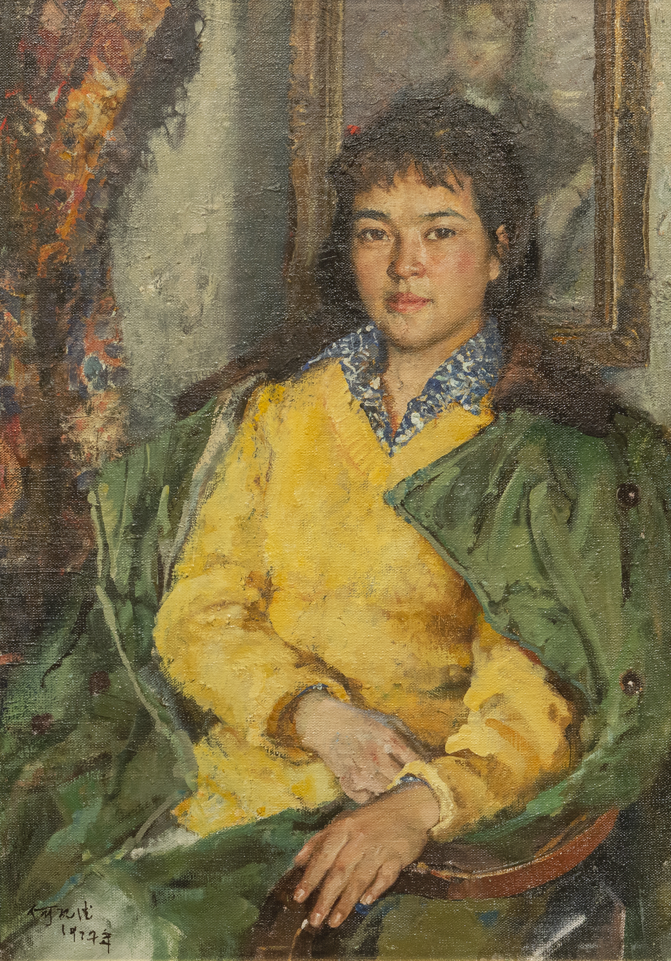 何孔德 1974年作 劉曉慶初登銀幕時 油画 額装 著録品 真作保証 中国 絵画 現代美術 收藏