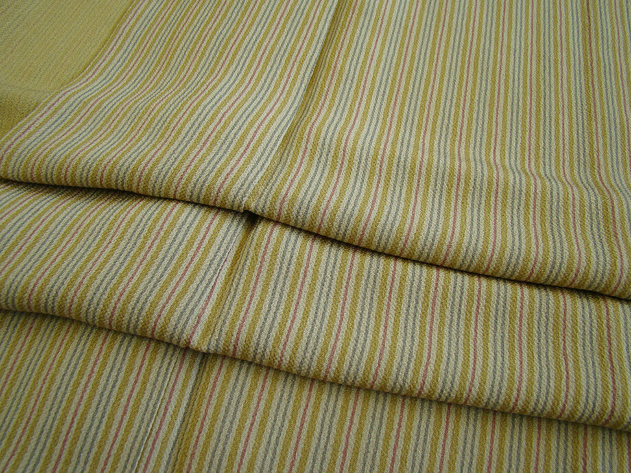 店舗改装セール!美品!単衣 裄63.3cm S寸 粋 縞柄 縮緬地 小紋 正絹 仕立上り 147cm~153cm KJ207 收藏