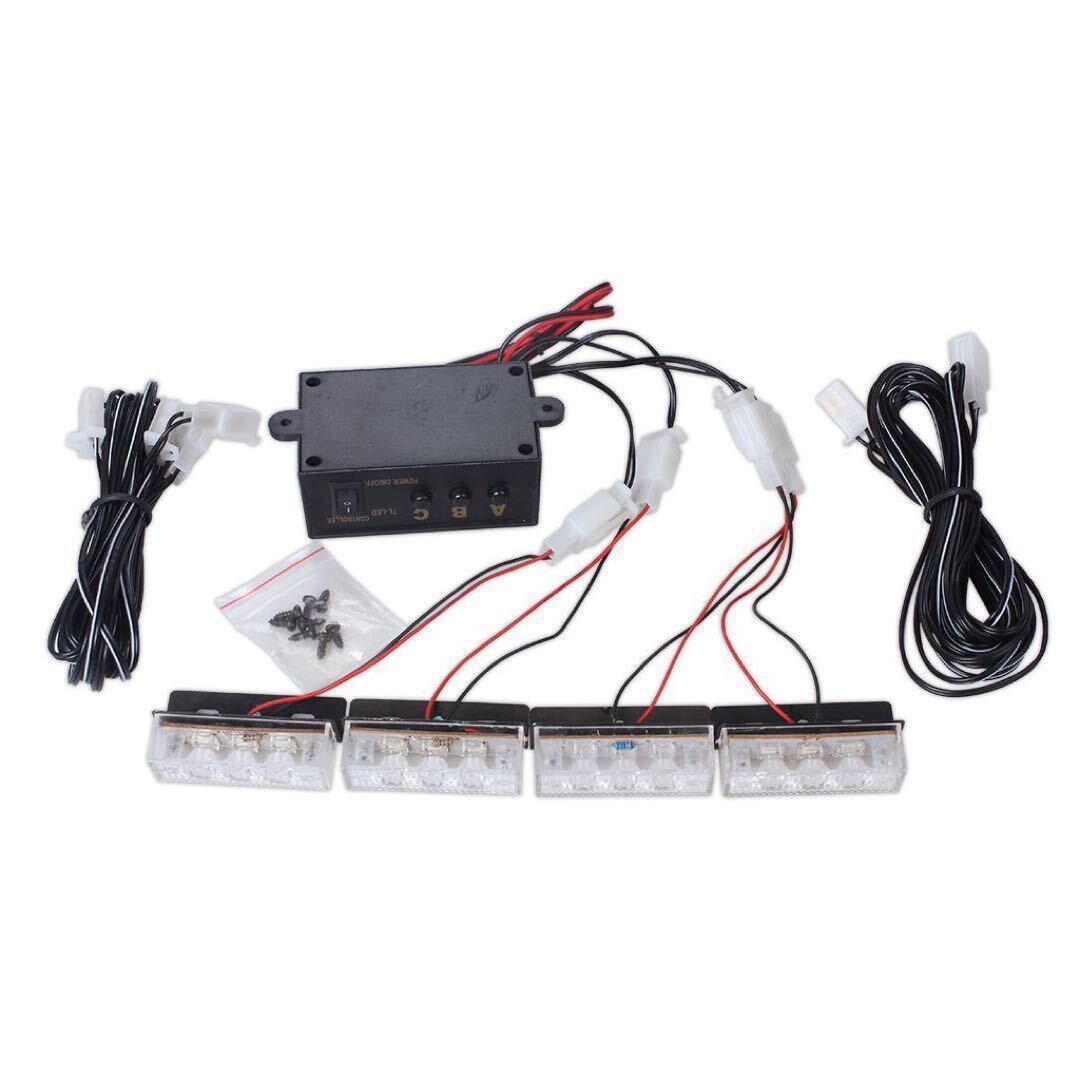 12V 車用 四連れ フラッシュ緊急ストロボ 12LEDライト ブルー レッド