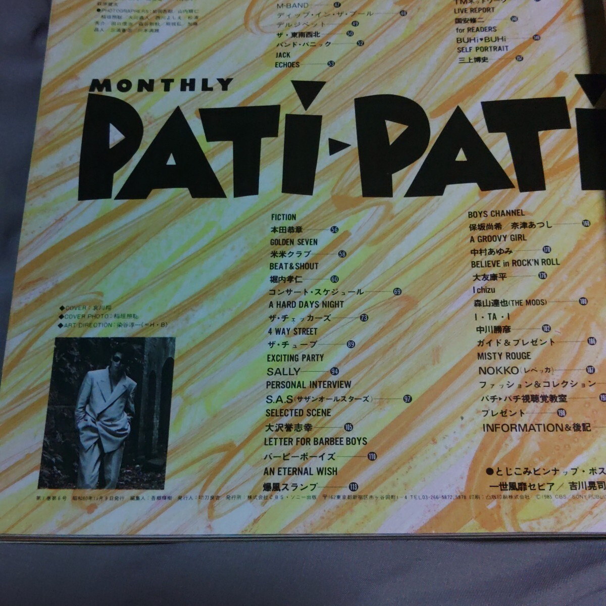 ★3W★雑誌パチパチ PATI PATI 1985年11月号 一世風靡セピア/吉川晃司/LOOK/サザンオールスターズ/中村あゆみ/森山達也/マリコwithキュート 收藏