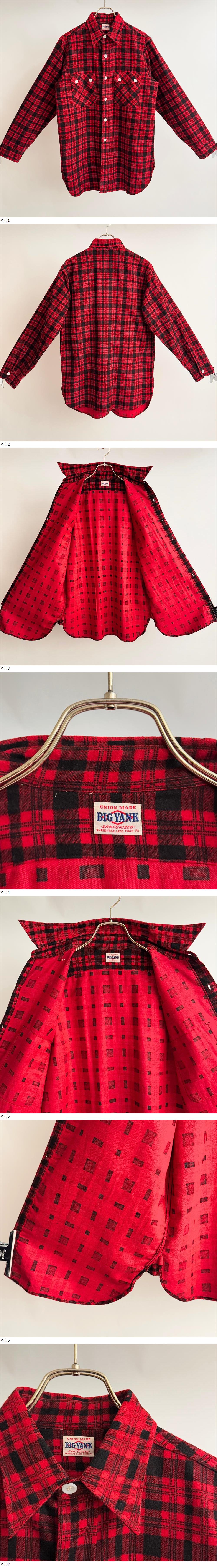 希少《 Mint Condition(1Wash) / BIGYANK 》50s 60s 極上品【 ビッグヤンク 赤黒 コットン プリント ネル ビンテージ ネルシャツ 】 收藏