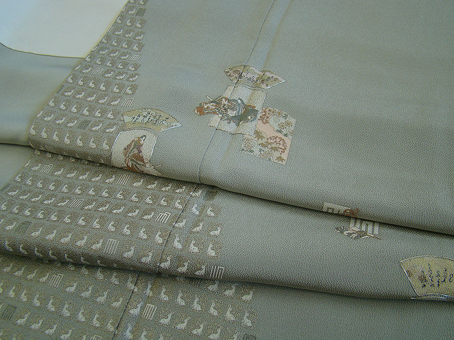 時代屋 裄67.5cm 松尾光琳 極上縮緬地 銀彩加工染 色留 訪問着 正絹 仕立上り 袷 井桁 156cm~162cm D603 收藏