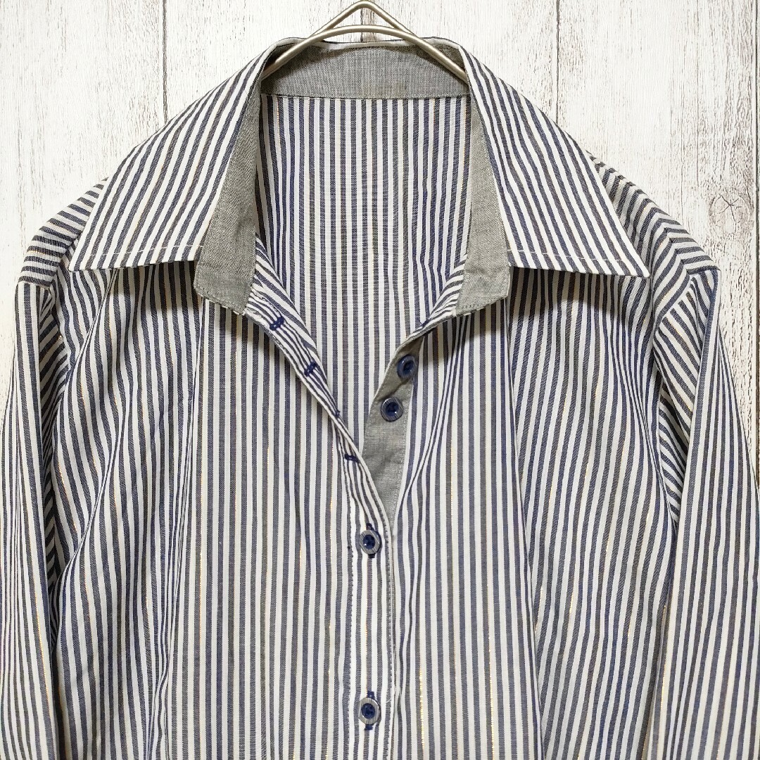 WELFARE (M) 長袖ブラウス ストライプ スリット糸使用 收藏