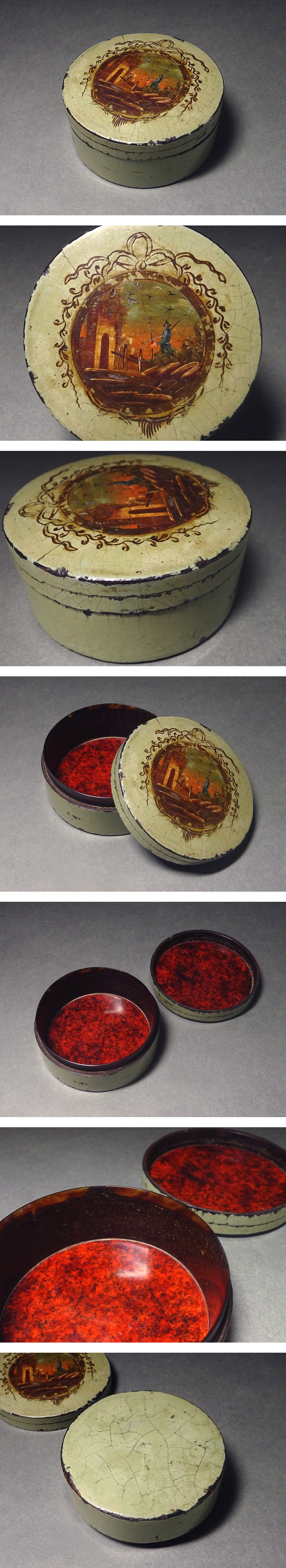 花◆18-19世紀頃 フランスアンティーク 木製ヴェルニ・マルタン内べっ甲張り 手描き装飾タバティエール 嗅ぎ煙草入(スナッフボックス) 14 收藏