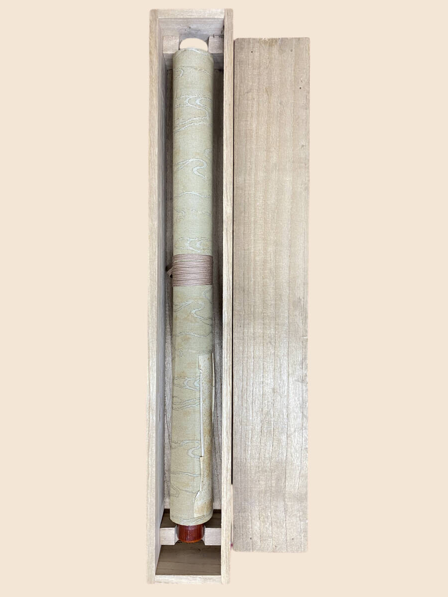 掛軸の軸先ですが、配送中の振動・気温・経年劣化等で外れてしまうことがあります。軸先の外れは、返品の対象にはなりません。大変お手数ですが、お客様ご自身での修復をお願い致します。