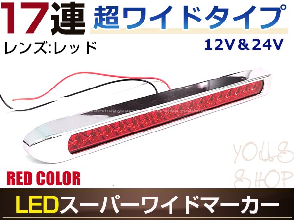 17連LED スーパーワイドマーカーランプ 1個セット 12V/24V対応 レッドレンズ レッド発光 暗点灯・明点灯 2段階発光モード搭載 車高灯に 收藏
