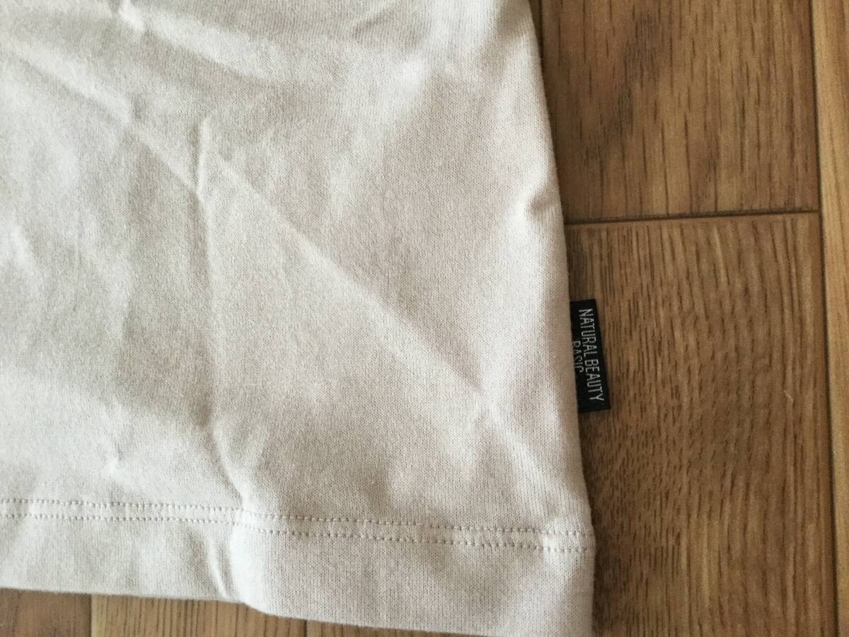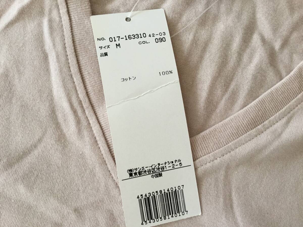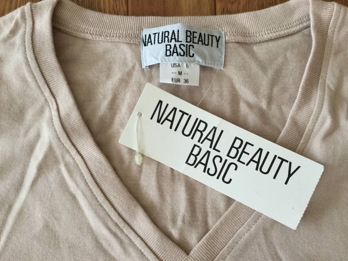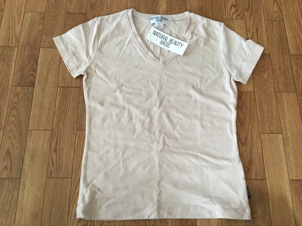 未使用タグ付きナチュラルビューティーベイシックVネック半袖Tシャツ薄ピンクM。着丈55cm身幅39cm。